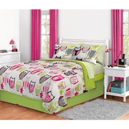 Reviews 4pc Girl Green Pink Owl Zebra Bird Queen Comforter Set