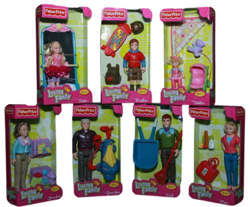 Reviews Fisher Price Loving Family Dollhouse Figures Full Family of 7 Grandma Grandpa Mother Father Sister Brother and Toddler Beautifully Warped in Cellophane and Ribbon